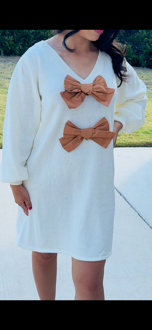 HAILEY BOW SWEATER DRESS - OFF WHITE