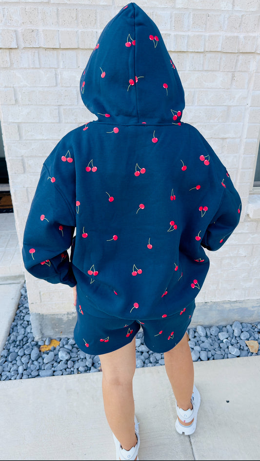 CALI CHERRY FLEECE HOODIE SWEATSHIRT - NAVY