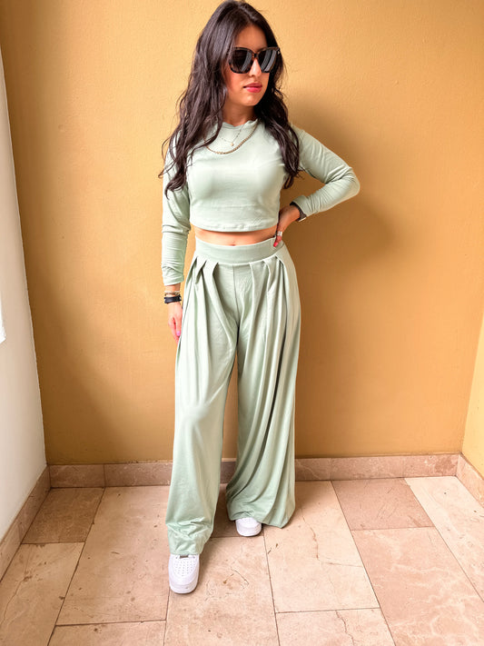 MEGHAN PLEATED PANTS & TOP SET - SAGE GREEN