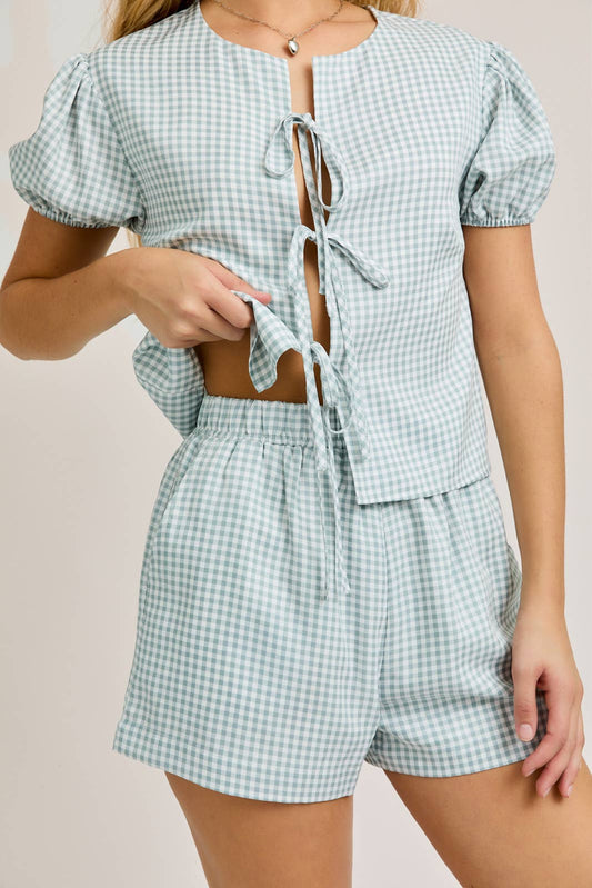 CATALINA FRONT TIE GINGHAM SET - WHITE / BLUE