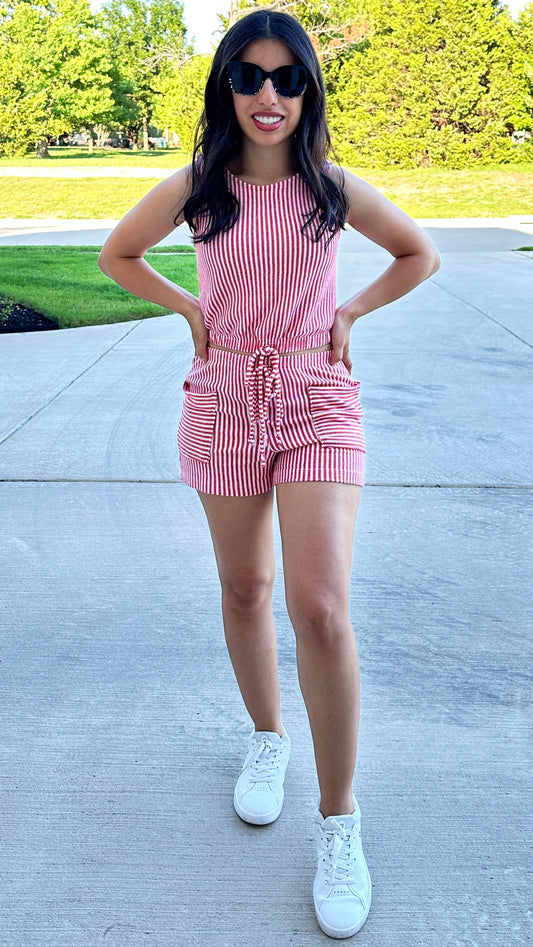 MATADOR STRIPED TOP & SHORT SET - WHITE/RED