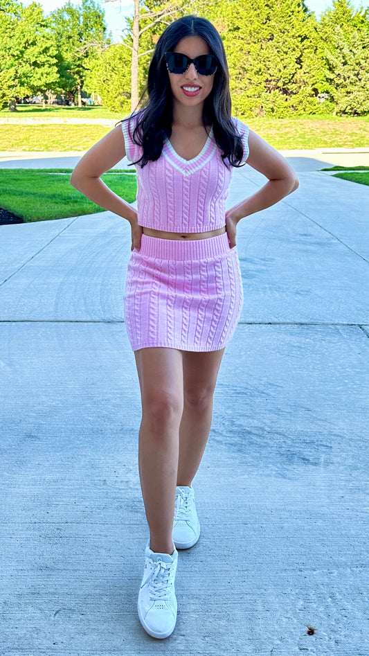 SCHOLAR TOP AND SKIRT SET - LIGHT PINK
